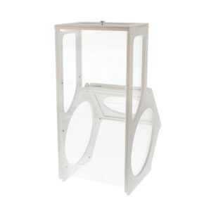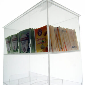 Il Dispenser è realizzato in legno multistrato e plexiglass trasparente.
