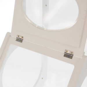Nella parte superiore è posto un coperchio dal quale è possibile ricaricare il dispenser; la spaziosa finestra sul retro consente di prendere i prodotti con facilità, la chiusura ermetica garantisce al prodotto di rimanere fresco e in un’atmosfera sterile e protetta.