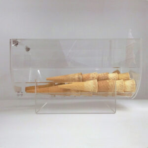 Espositore Porta cialde di caffè in forex dal formato verticale, ideato per contenere bustine di cialde del caffè. Sul retro è presente una fessura per caricare le cialde e un blocco spingi cialda da inserire per ultimo. L’espositore è ideato in modo da garantire la caduta della cialda successiva ogni qualvolta viene recuperata la prima.