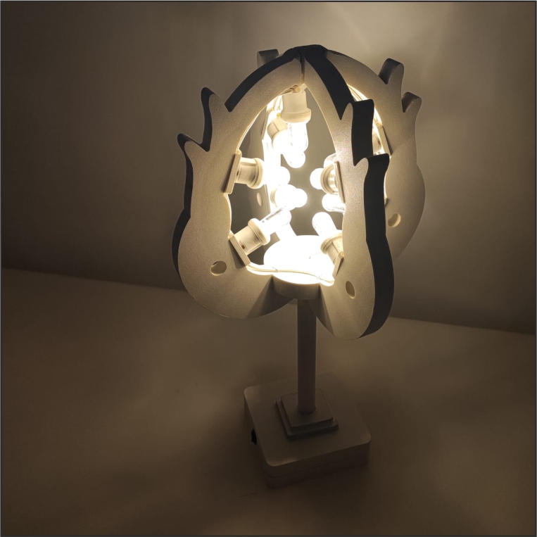 Luminaria artigianale da tavolo con batteria ricaricabile con 9 punti luce a led E14.